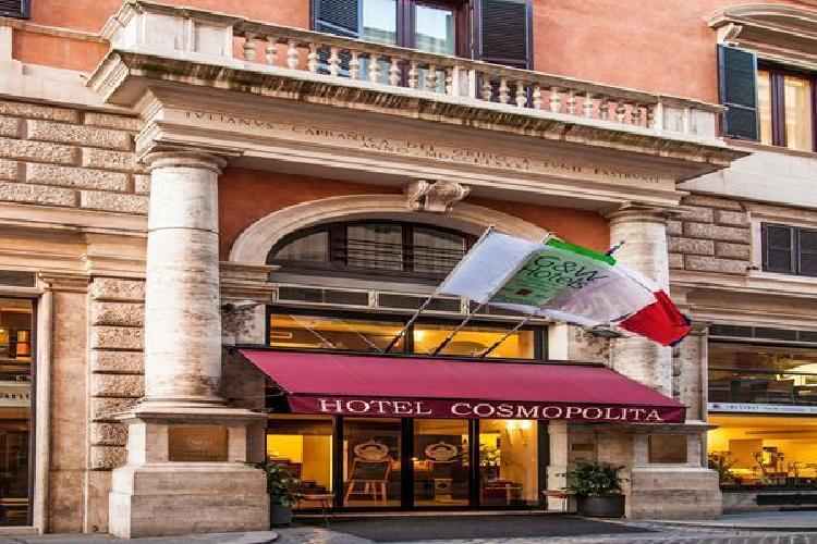 En el corazón del centro histórico de Roma, en la esquina de la Piazza Venezia, cerca del Foro Romano y del Coliseo el Hotel Cosmopolitan ofrece una ubicación que le permite disfrutar tanto de la cultura de Roma, que del shopping.Todas las 68 habitaciones disponen de: acceso a Internet, aire acondicionado, caja fuerte, minibar, radio, teléfono de línea directa, TV vía satélite, pay TV, servicio en las habitaciones.Un rico desayuno a buffet a la americana se sirve en la sala de desayunos cada mañana desde las 7,00 hasta las 10,00 horas.OTROS SERVICIOS- Aire acondicionado en zonas comunes- Bienvenidos grupos- Servicio de lavandería- Servicio de habitaciones (horario limitado)- Guía de la ciudad- Información Turística- Plano de la ciudad- City Tour- Banquete- Centro de negocios- Sala de reuniones- Baby sitter- Internet- Bar- Roof Garden- Habitaciones para fumadores,- Almohadas antialergicas y ropa de cama.Està disponible un garaje convencionado cercano al hotel.Con reserva también está disponible un servicio de transporte y un servicio de limusina desde/hacia el aeropuerto.Check-in: 14.00